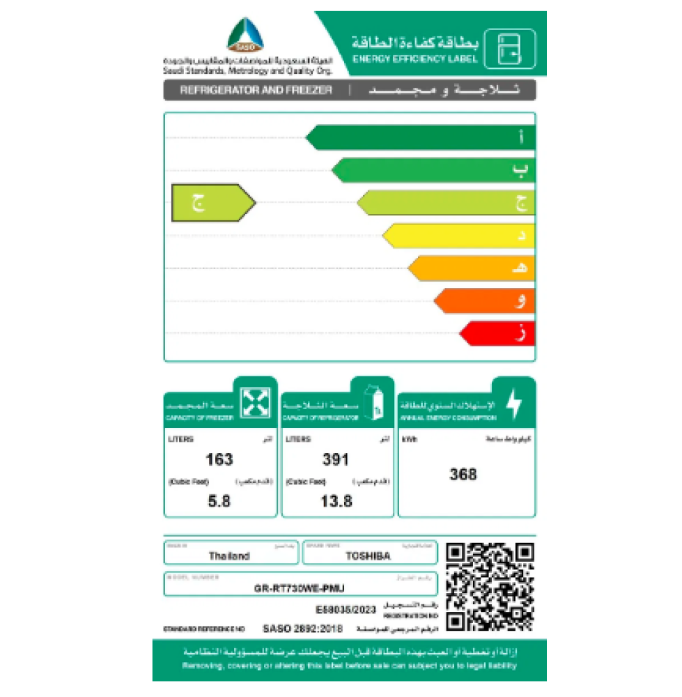 ثلاجة توشيبا بابين 19.6 قدم استيل GR-RT730WE-PMU-04
